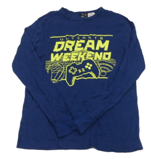 Tmavomodré pyžamové triko se žlutým nápisem a ovladačem H&M