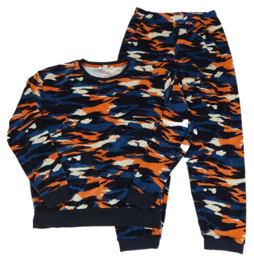 Tmavomodro-béžovo-oranžové army plyšové pyžamo M&S