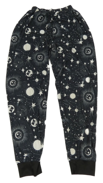 Antracitovo-bílé vzorované pyžamové kalhoty s planetami a hvězdami