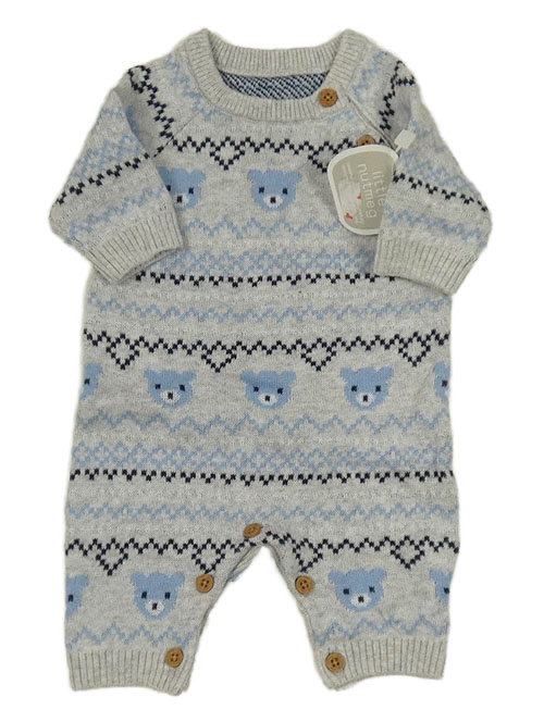 Nový - šedo-modro-tmavomodrý vzorovaný pletený overal s medvídky little nutmeg