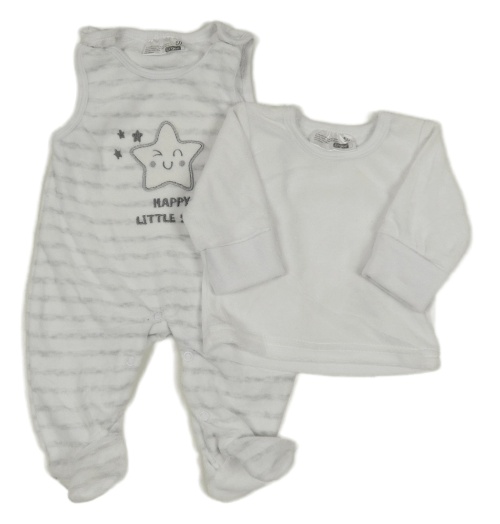 2set - Bílo-šedé pruhované sametové dupačky s hvězdou + triko Ergee