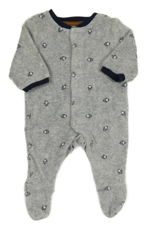 Šedý sametový overal s tučňáky