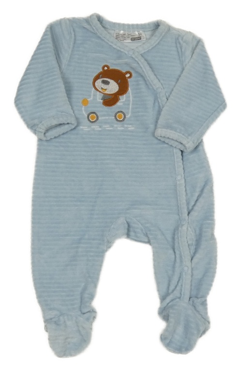 Světlemodrý žebrovaný plyšový overal s medvídkem Ergee