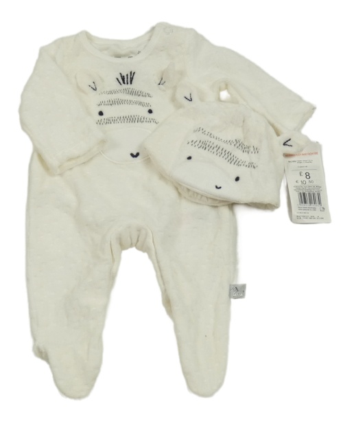 Nové - 2set - Smetanový sametový overal se zebrou + čepice F&F