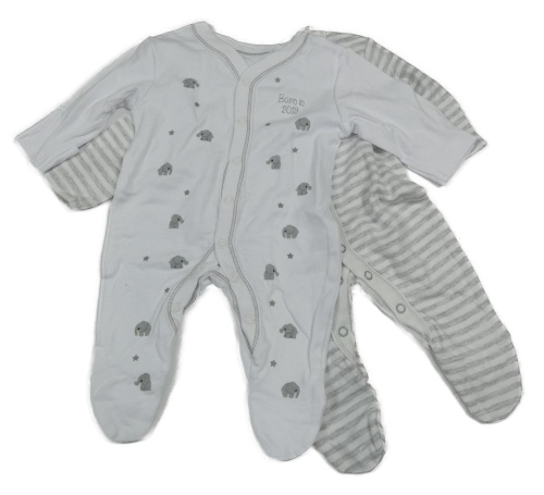 Nové - 2x overal - bílý se slony + bílo-šedý pruhovaný