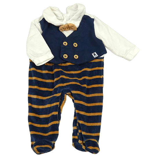 Tmavomodro-bílo-hnědé teplákovo/sametový overal s vestou a pruhy
