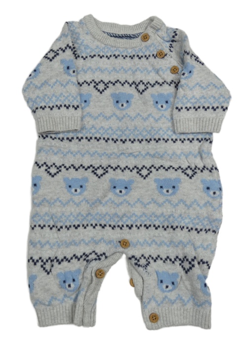 Šedo-modrý vzorovaný pletený overal s medvědy Little nutmeg