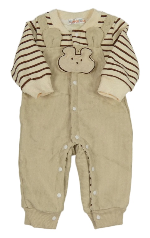 Béžovo-pruhovaný teplákový overal s medvídkem Kookie Kids