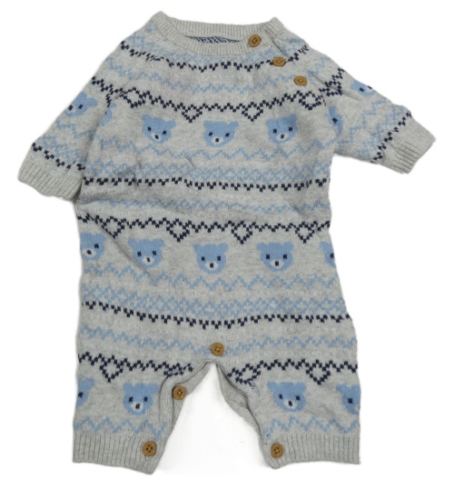 Šedo-modrý vzorovaný pletený overal s medvídky