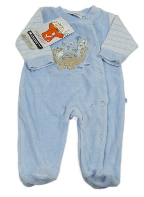 Nové - Světlemodro-pruhovaný sametový overal s dinosaurem Kik