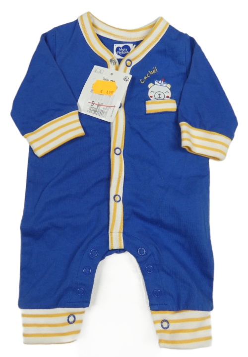 Nové - modrý overal s bílo-žlutým lemem a obrázkem