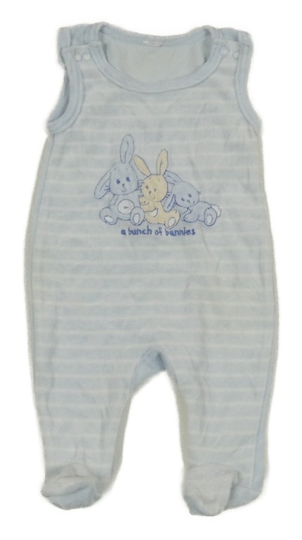 Světlemodro-bílé pruhované sametové dupačky s králíky