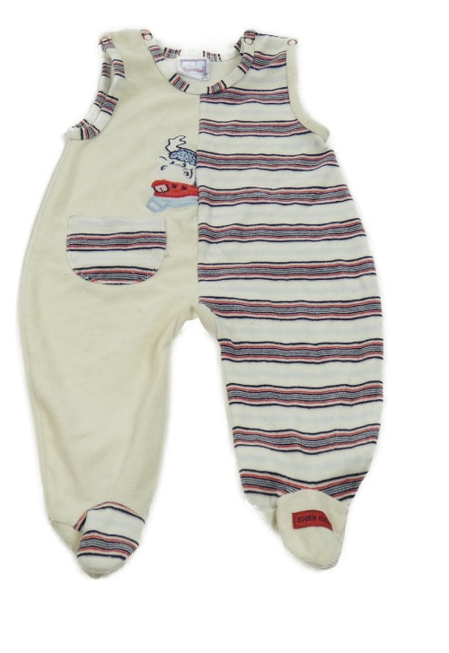 Smetanovo-tmavomodro-červené sametové dupačky s losem a pruhy Topolino