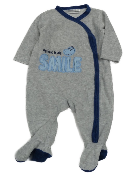 Šedo-tmavomodrý melírovaný sametový overal s nápisy Ergee