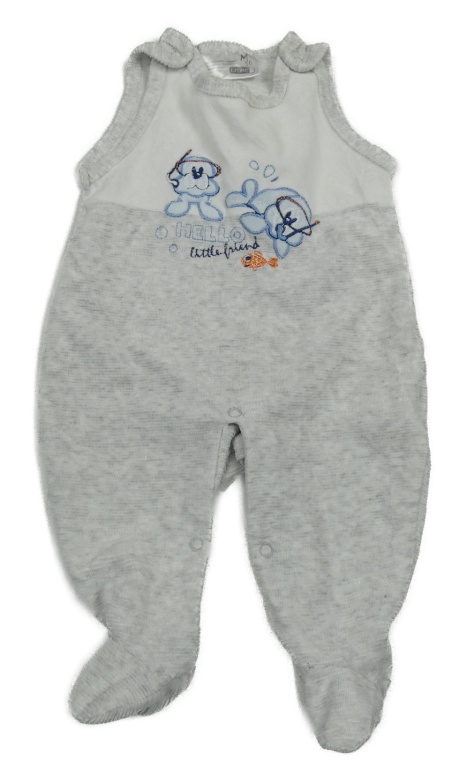 Světlešedo-bílé žebrované saemtové dupačky se psem a tuleněm Ergee