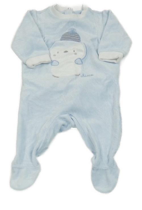 Světlemodro-bílý sametový overal s tučňákem