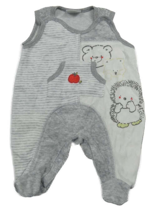 Bílo-šedo-pruhované sametové dupačky s ježkem