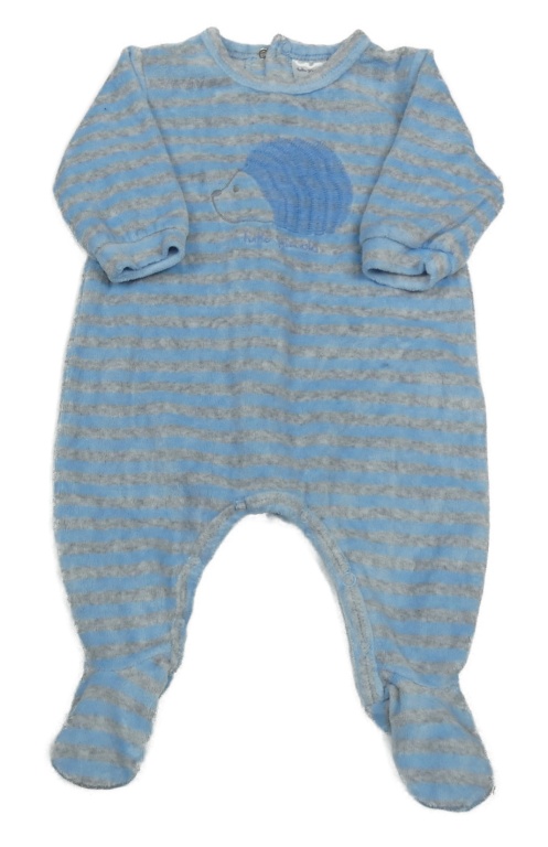 Modro-šedý pruhovaný sametový overal s ježečkem tutto piccolo