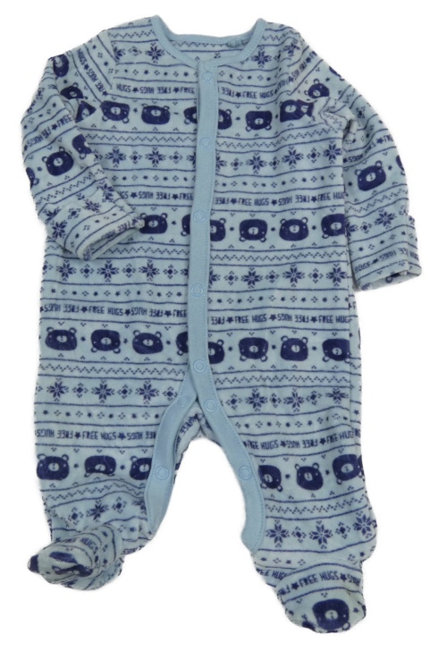 Světlemodro-tmavomodrý vzorovaný sametový overal s medvídky TU