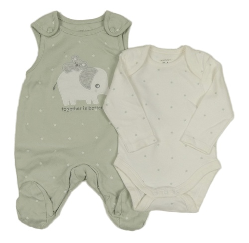 2 set - bílé body s hvězdičkami + zelené dupačky se slonem C&A