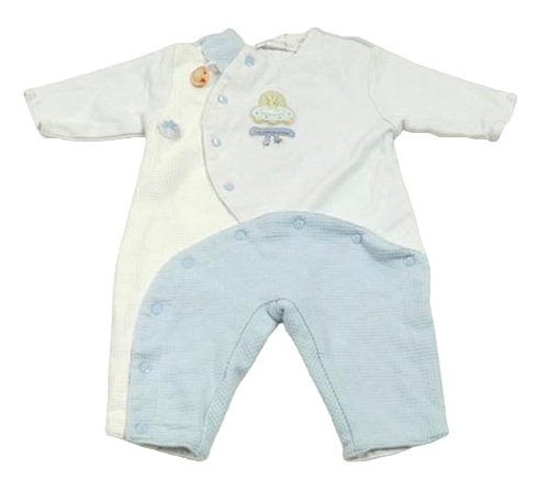 Bílo-světlemodrý podšitý overal s nášivkami