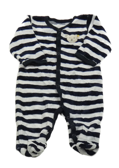 Černo-bílý pruhovaný sametový overal s medvídkem