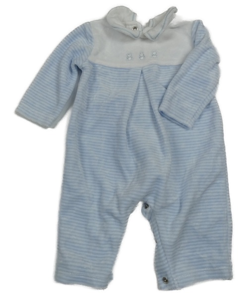 Světlemodro-bílý pruhovaný sametový overal s límečkem