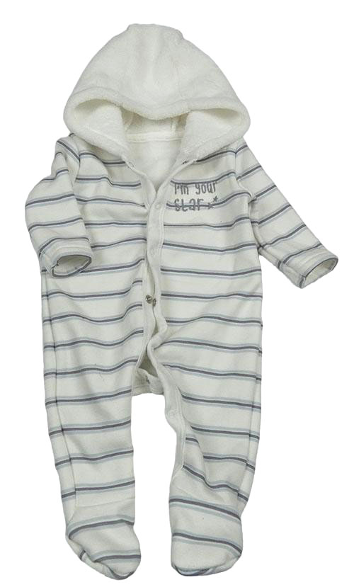 Smetanovo-šedo-světlemodrá pruhovaná tepláková kombinéza s chlupatou kapucí Dunnes