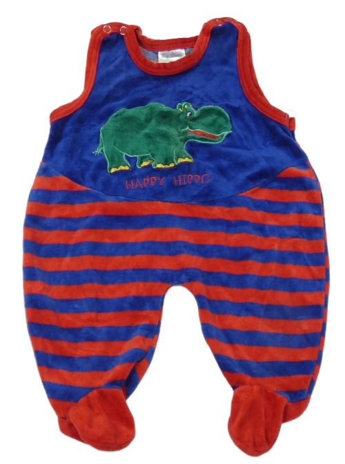 Červeno-modré pruhované dupačky s hrochem