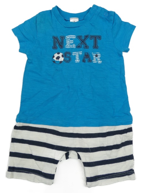 Modro-bílý kraťasový overal s nápisem a fotbalovým míčem Topomini