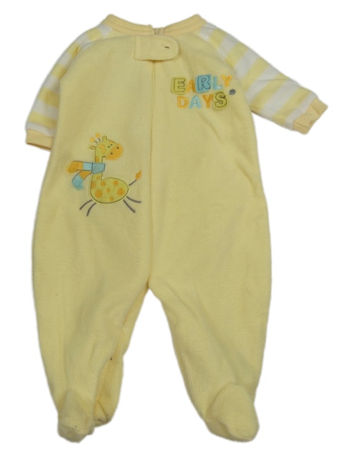 Žluto-bílý fleecový overal se žirafou a nápisem Early Days
