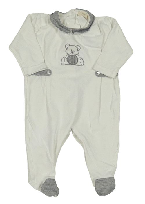 Bílo-tmavomodrý overal s medvídkem a límečkem