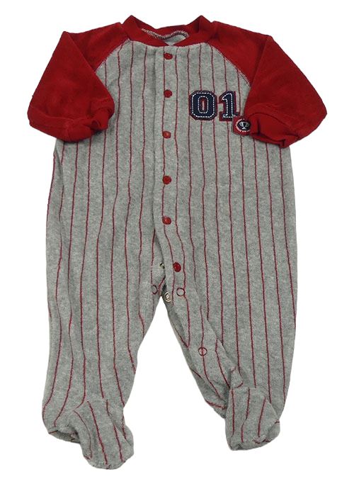 Šedo-červený pruhovaný melírovaný froté overal s číslem a pohárem carter's