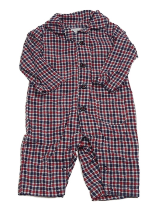 Tmavomodro-červeno-bílý kostkovaný košilový overal
