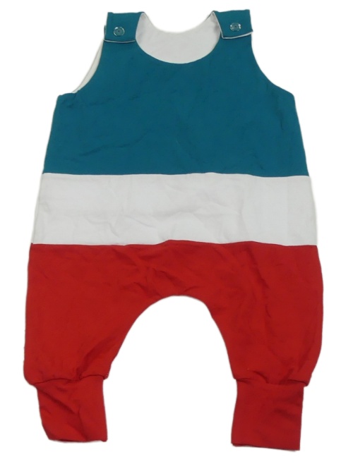 Petrolejovo-bílo-červený overal