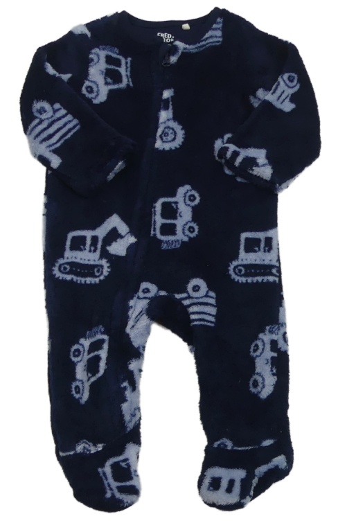 Tmavomodrý chlupatý overal s dopravními prostředky F&F