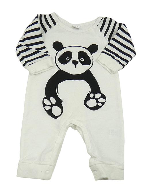 Bílo-černý overal s pandou a pruhy na rukávech PatPat