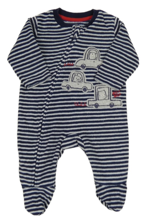 Tmavomodro-bílý pruhovaný fleecový overal s auty George