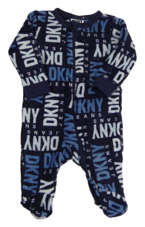 Tmavomodrý chlupatý overal s nápisy DKNY