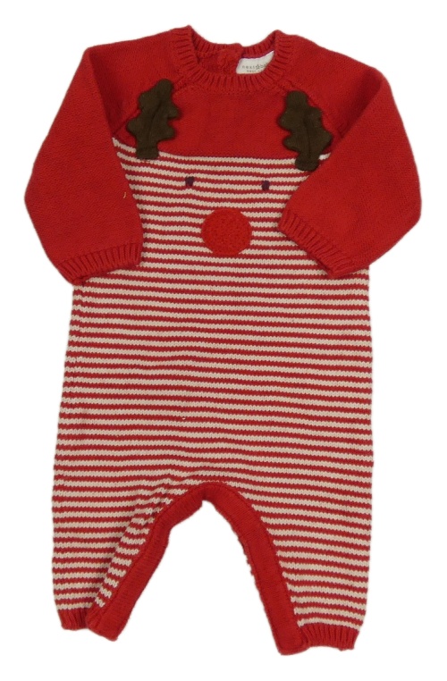 Červeno-bílý pruhovahý pletený overal se sobem Next