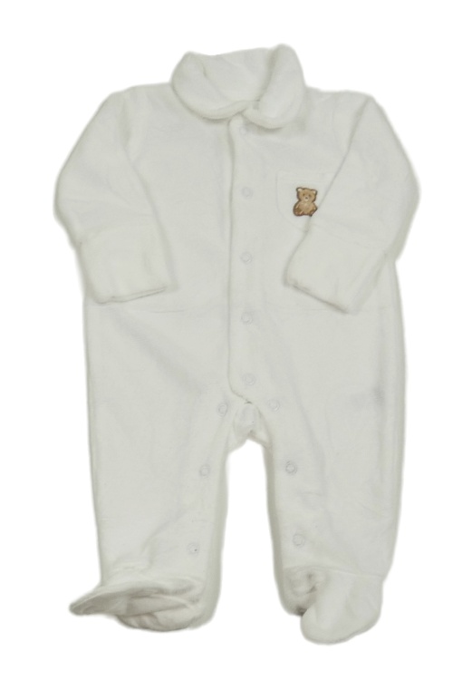 Bílý sametový žebrovaný overal s medvídkem a límečkem George