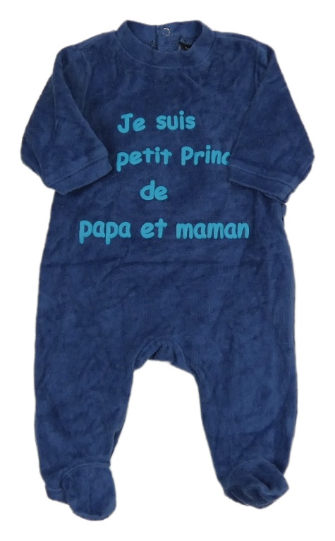 Tmavomodrý sametový overal s nápisem
