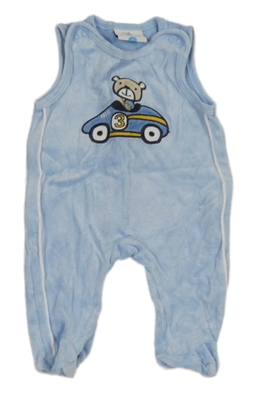 Světlemodré sametové dupačky s autem s medvědem Topomini