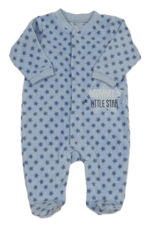Světlemodrý fleecový overal s hvězdičkami a nápisy early days
