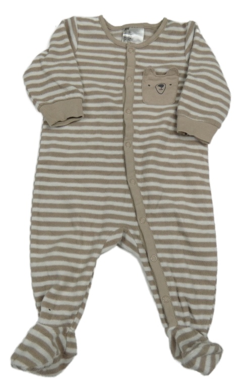 Béžovo-bílý pruhovaný sametový overal s medvídkem H&M