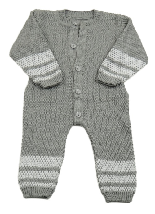 Šedo-bílý pletený overal s pruhy