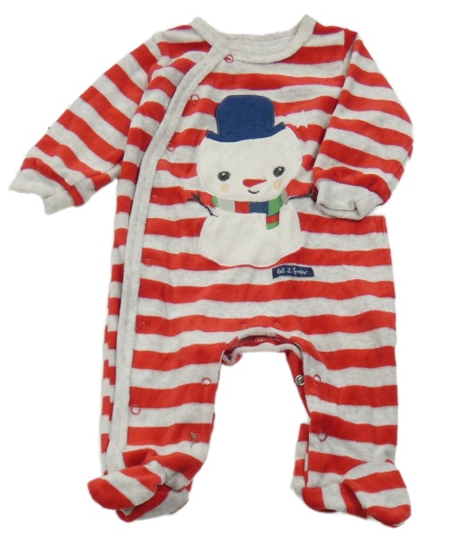 Světlešedo-červený pruhovaný sametový overal se sněhulákem Cool Club