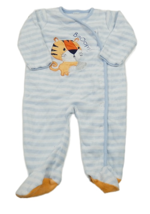 Světlemodro-bílý pruhovaný sametový overal s tygrem