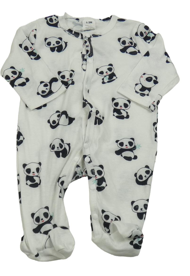 Bílý žebrovaný overal s pandami