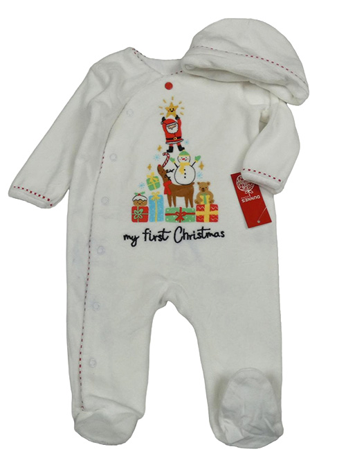 Nové - 2 set - bílý sametový overal s vánočním obrázkem + čepice dunnes